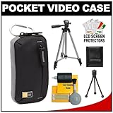 Caselogic TBC-312 Pocket Video Camera Camcorder Case (Black) with Tripod + Cleaning Accessory Kit